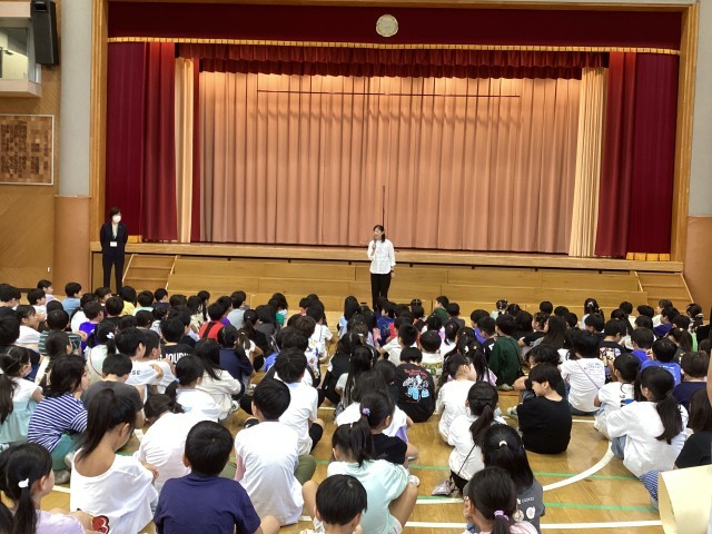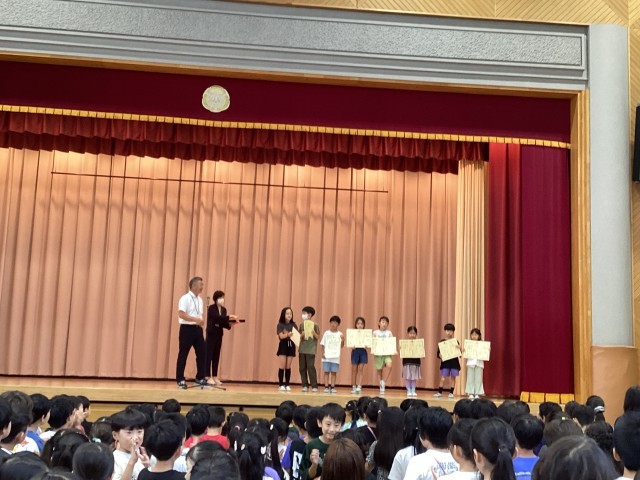 10月の全校朝会が行われました。校長先生からは、笑うことの良さについての話がありました。絵やスポーツに関する表彰も多く、子供たちにも良い刺激となりました。また、公園の使い方について生活指導主任より話がありました。