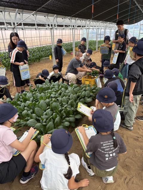 3年生は初めての社会科見学に行きました。まずは江戸川区名産の小松菜農園に来ました。土作りから気温や水の管理の大切さについて学ぶことができました。