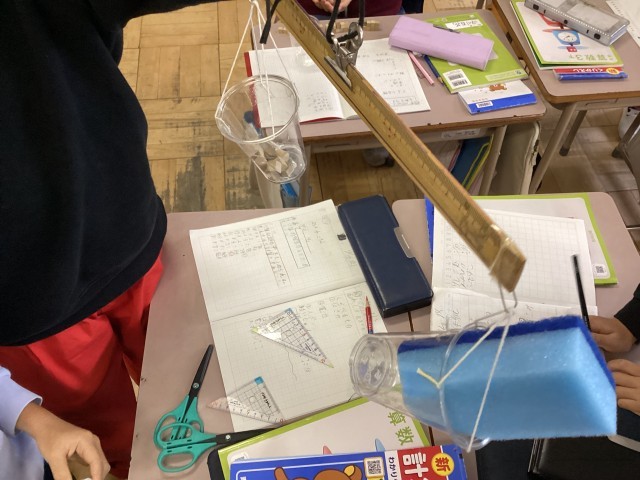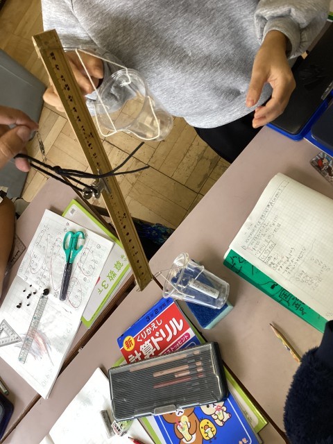 3年生の算数では、重さの学習が始まりました。「1g」を体感し、身近にあるものの重さを天秤を使って調べる学習を行いました。