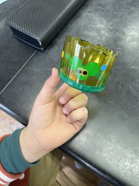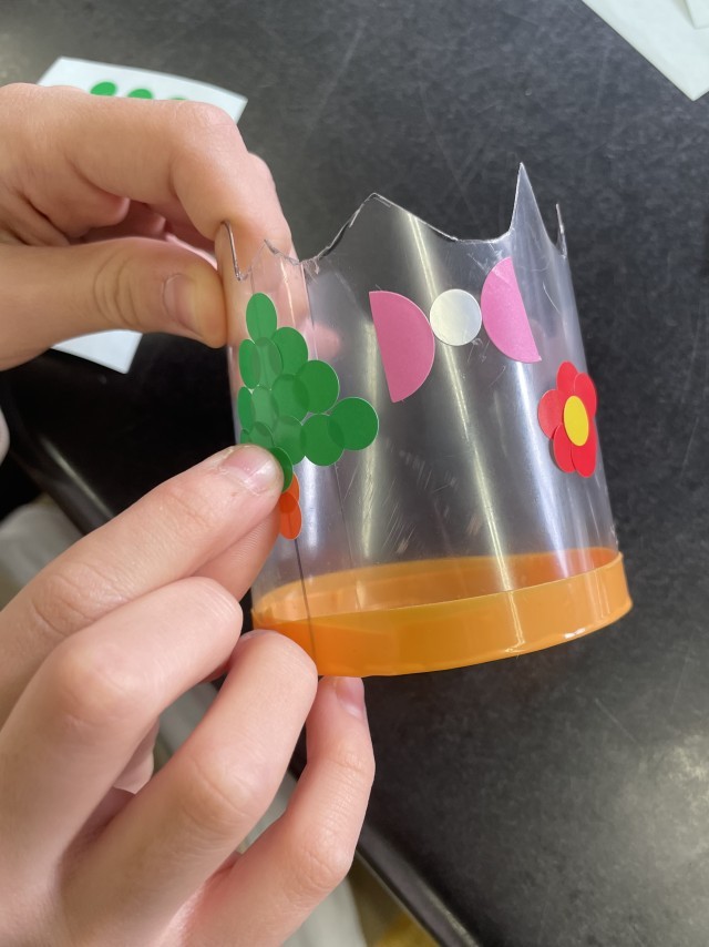 一人一人がペットボトルの切り方や重りのつけ方を工夫し、オリジナルの作品ができました。