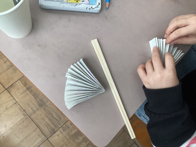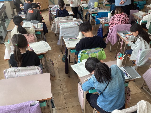 2年生の国語では、説明文を気をつけて読み、紙コップ花火のおもちゃ作りを行いました。作り方の順序や向きや大きさを気を付けながら真剣に作業しました。出来上がった後には、友達と作品を見せ合って、楽しそうに遊ぶ様子が見られました。