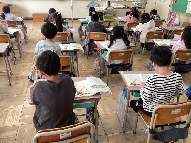 国語では「自動車くらべ」の学習をしています。ショベルカーやバスの仕事、そのためにどのようなつくりになっているかについ自分で学習を進めています。ワークシートも自分なりにまとめて、友達と交流をしています。