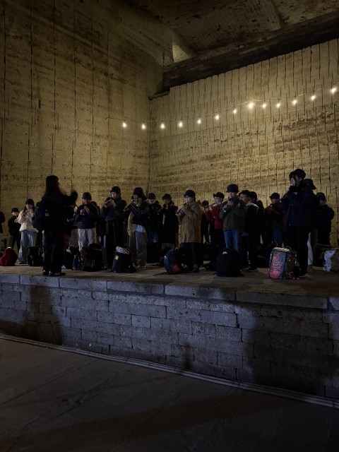1日目は、大谷資料館に来ました。初冬の外の寒さより、中はさらに寒かったです。映画やPVの撮影にも使われている幻想的な空間でした。舞台でリコーダーによるカノンを演奏しました。
