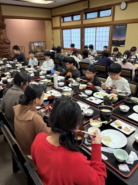 2日目の朝。現地の気温は4度。日光らしい寒さです。子供たちは全員元気です。朝ごはんを食べ、ハイキングに出かけます。