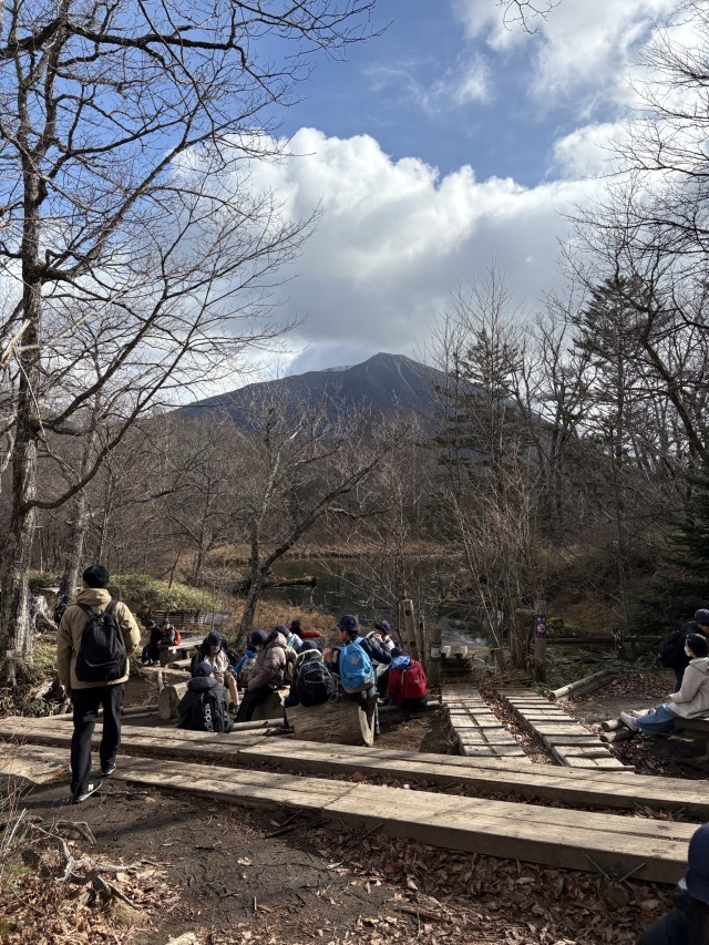 湯元を見学した後、湯滝を見てハイキングスタート。昨日のネイチャーガイドさんの話をもとに楽しく歩きました。