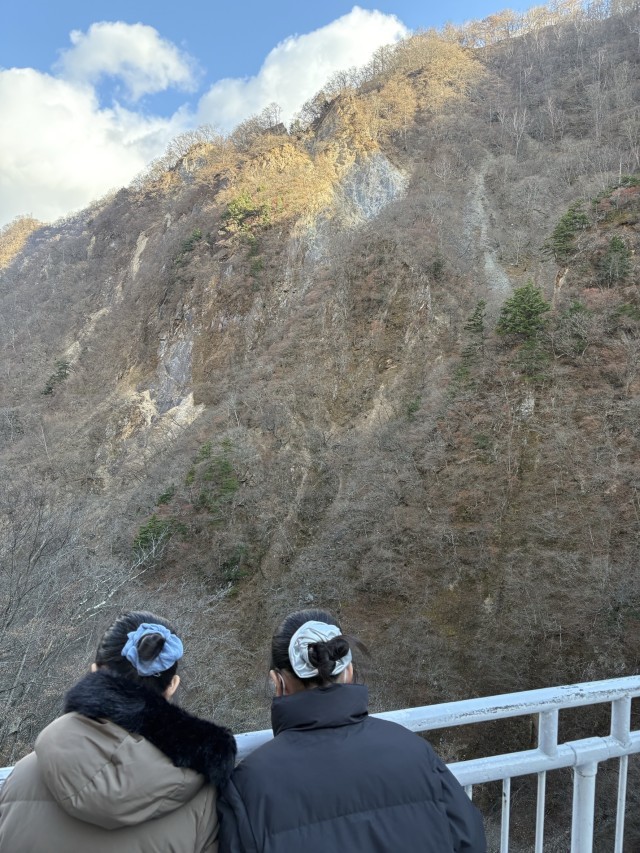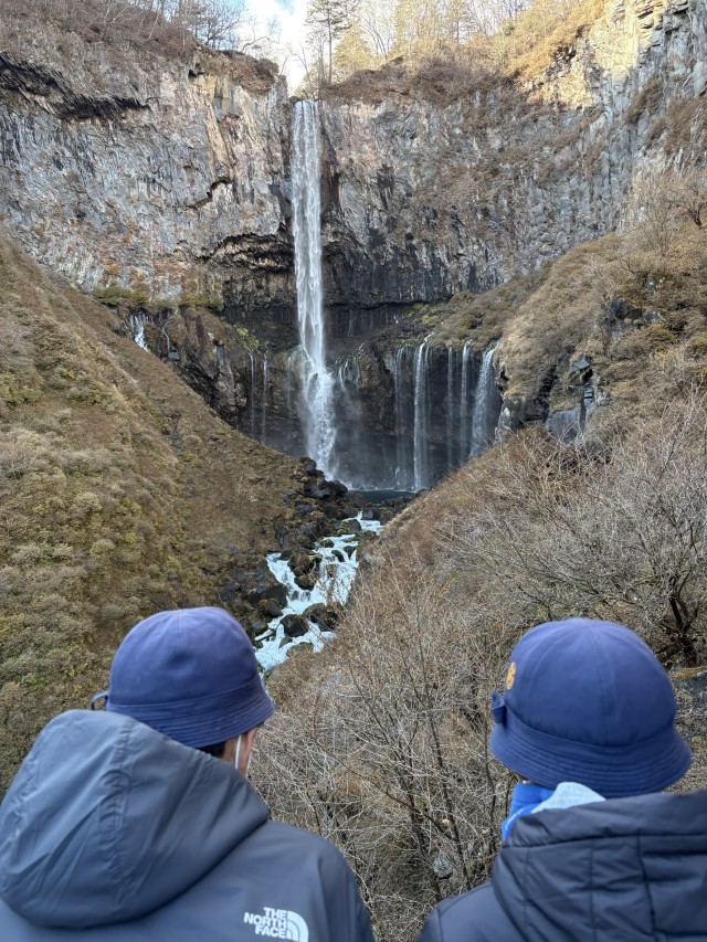 2日目のハイキングの仕上げは華厳の滝です。その雄大さに感激していました。