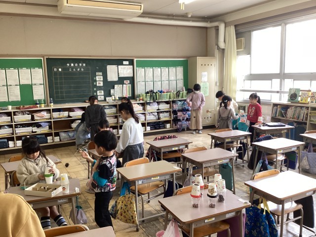 先日、生活科の時間に作った秋のおもちゃの交流会をしました。学年合同で行い、多くの友達の作品に触れ合うことができて嬉しそうな様子でした。