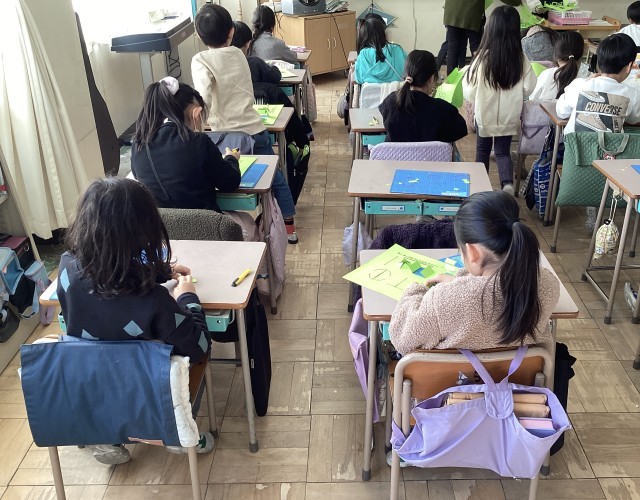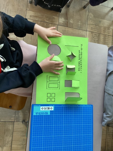 今日の図工では、カッターナイフを使って工作をしました。画用紙に切り込みを入れて、窓を開きました。上手に開けた時には「わぁー、できた!」と笑顔になって、とても嬉しそうに声を上げていました。