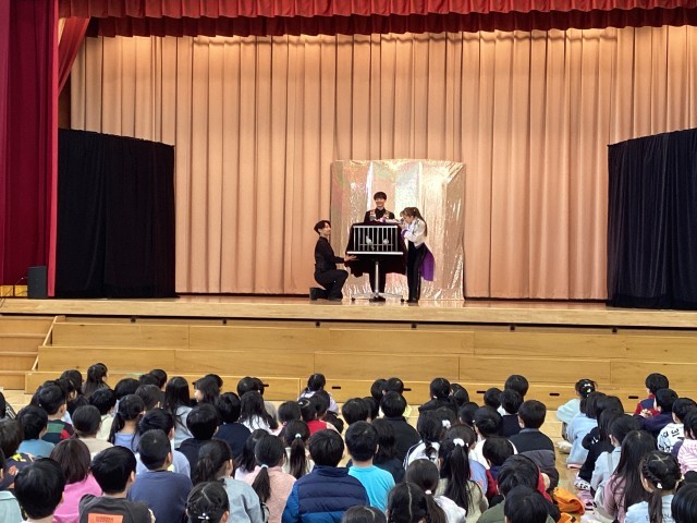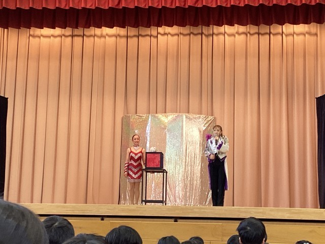 本日2時間目、幻想師WiZのみなさんによるマジックショーが行われました。棒から鳩が出てきたり、鳩が人に変わったりと驚くようなマジックの数々を目にしました。子供たちは「すごい!!」「なんで⁉」と、驚きが止まらない様子でした。