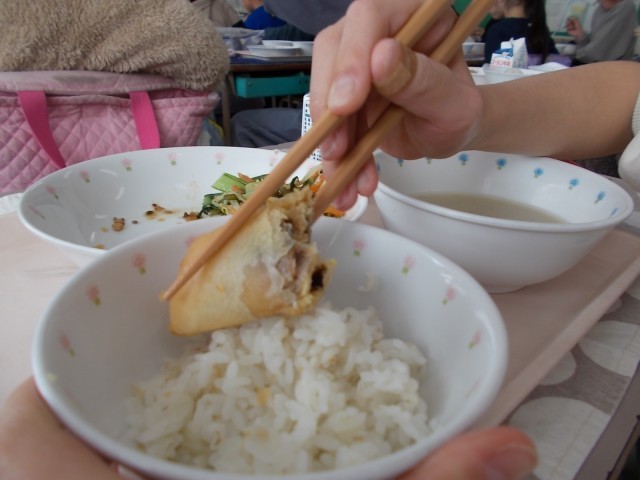 魚が苦手な子も春巻きの皮に包むことによって、よく食べている様子でした。
