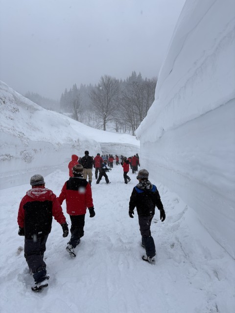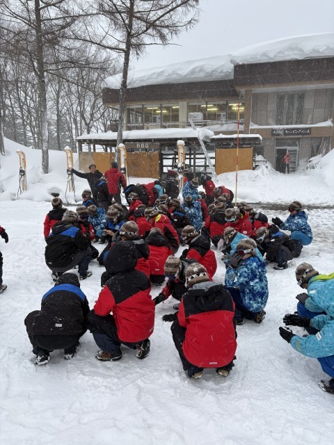 宿舎到着後、スキーウェアに着替えて周辺を散策。サラサラとした雪質に大興奮です。十分な時間はとれませんでしたが、明日に向けてのいい準備ができました。