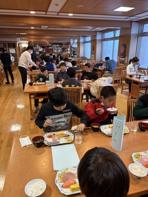 2日目の朝を迎えました。子供たちは全員元気に過ごしています。朝ごはんを食べ、今日は1日スキーです。
