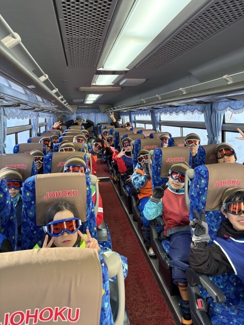 宿舎を出発し、いよいよスキー場へ出発!10mほどの除雪された雪道を走り、景色を楽しみながら向かっています。
