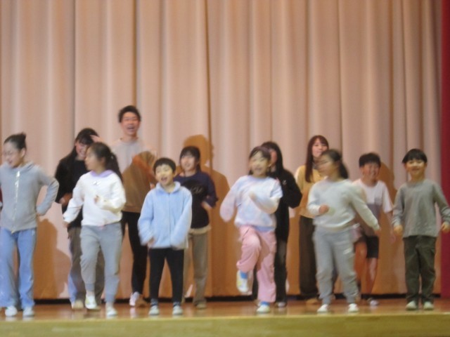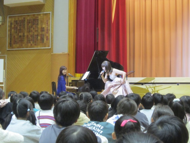 火曜日の3.4時間目に「笑顔コンサート」がありました。林家まる子さんをはじめ、劇団四季出身の方が素敵な歌声を披露してくださいました。聞いたことのある曲や、おなじみのダンスを通して子供たちは笑顔になりました。