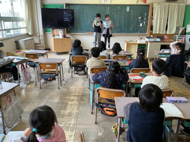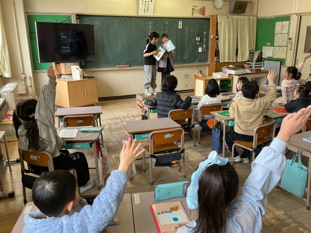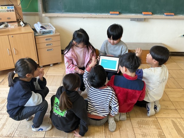 国語では、「これはなんでしょう❓」クイズを作成しました。学校にあるものや食べ物で3つのヒントを考えました。形や色など、特徴を考えながら、ペアの友達と話し合い、取り組みました。