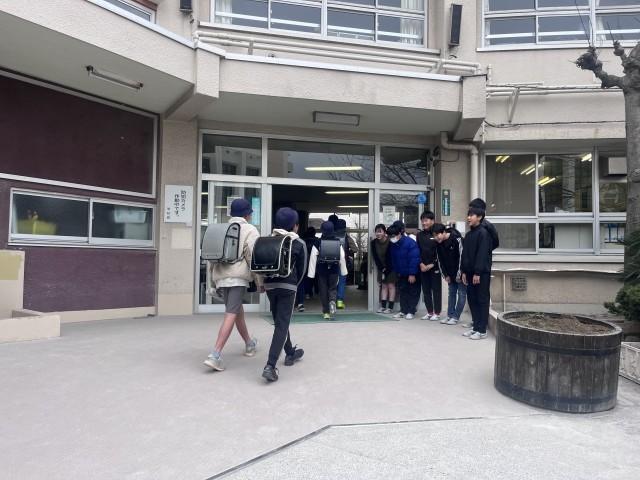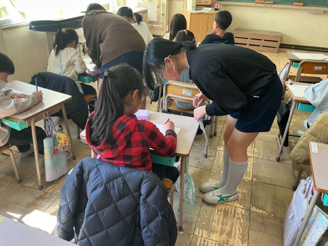 昇降口では、朝から明るい挨拶が響き渡ります。「笑顔で、相手より先に、元気よく」をテーマに挨拶運動をしました。専科の教室では、用具の清掃や整理整頓をしました。新学期に向けてみんなが気持ちよく学習ができるよう一生懸命掃除しました。低学年の教室では、六年生が先生となって授業を行いました。全員が理解できるよう、親身になって教えていました。