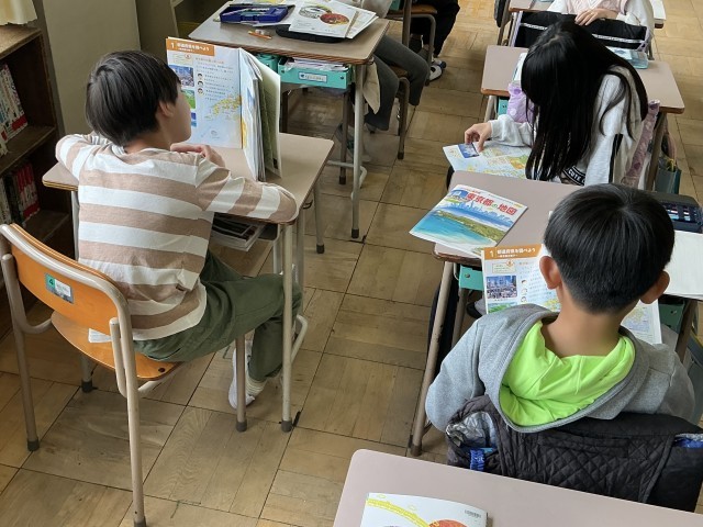 4年生の社会では、日本地図を使って東京都について学習しています。
