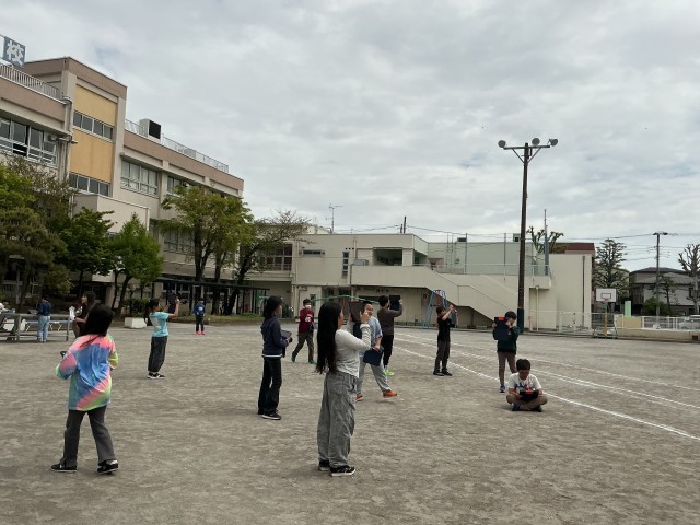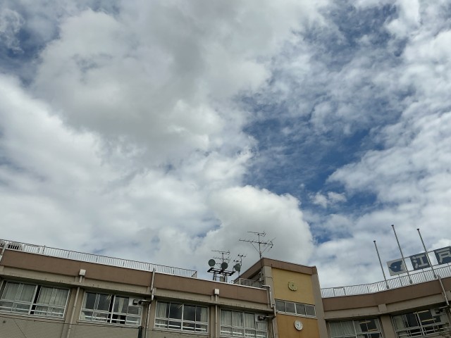 5年生の理科の学習では、雲の動きについて学習しています。今日は2時間後の空の様子を観察し、気付いたことを発表しました。雲の量が増えていることや、動くスピードに違いがあると発表していました。