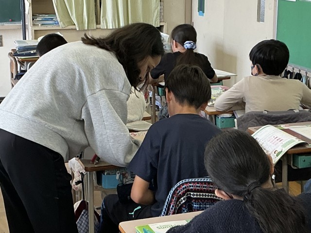 ALTの先生と外国語の学習をしていた6年生。