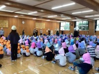 なわとびパフォーマーのふっくんが、小松川小学校にやってきました。はじめに全校児童が集まり、なわとびのパフォーマンスを見せてもらいました。そして各学年で、なわとびを上手にとぶ方法を教えて頂きました。夢中になって練習する児童の姿が見られました。ふっくん、どうもありがつございました!