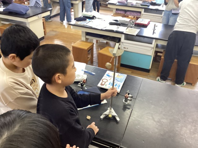 5年生の理科では振り子の学習が始まりました。この日は音楽に合わせて振り子を揺らす...