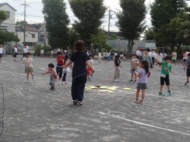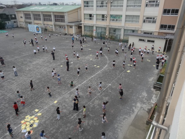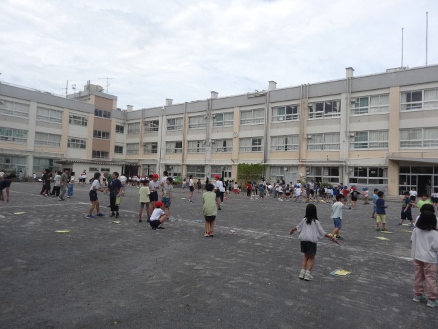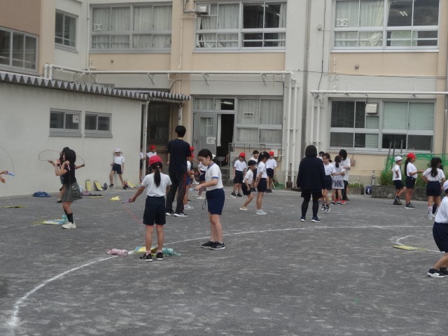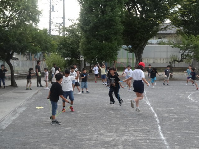 体力向上の一環で、2週間中休みに全校で縄跳びを行います。この日は、その1日目です。皆新たな跳び方ができるよう頑張っていました。