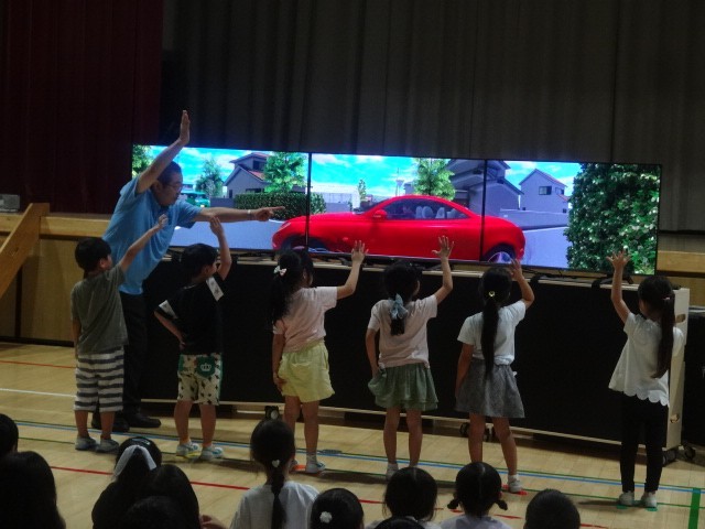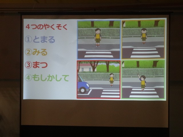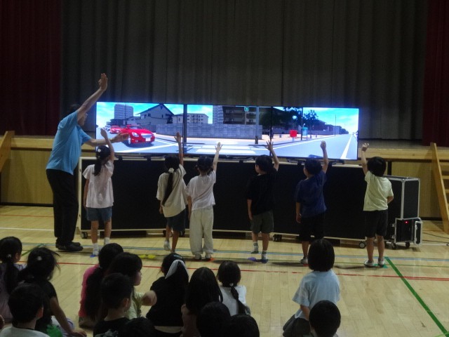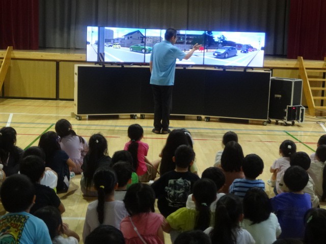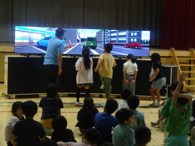 信号のあるところや交差点等様々な場面を想定して、いつ、どんな時に何を気を付けなければならないかをモニターを見ながら確認をしました。実際にありそうな場面ばかりでしたので、大変勉強になりました。