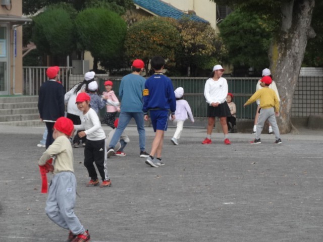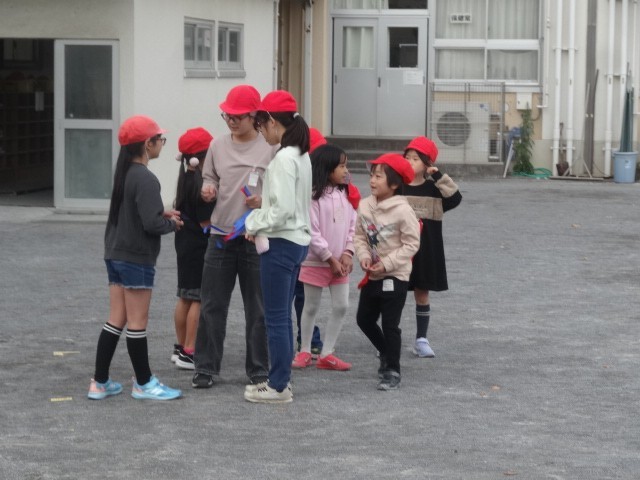 1年生と6年生のなかよしタイムでした。いつものように6年生が頑張ってくれましたが、この日は、チャレンジ・ザ・ドリームで来ていた中学生も参加してくれました。