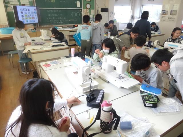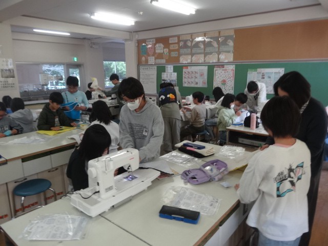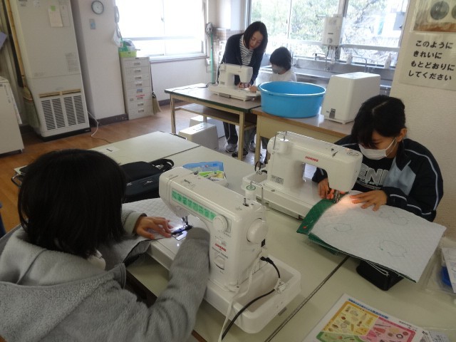 ミシンを使ってナップザックをつくっていました。みんな慎重にミシンを扱っていました。中には、完成した子もいたようです。