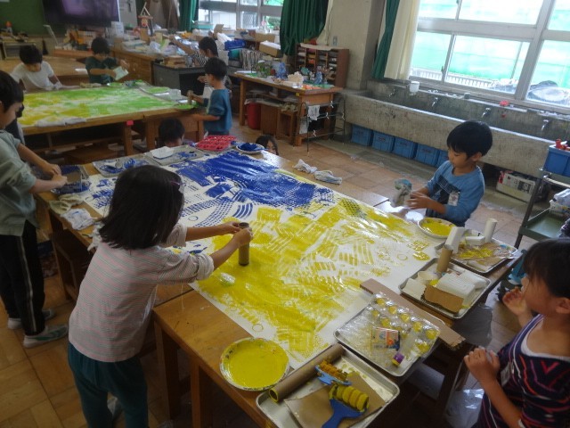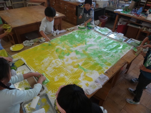 1年生も共同作品づくり頑張っています。さて、どのように仕上がるのでしょうか。楽しみです。