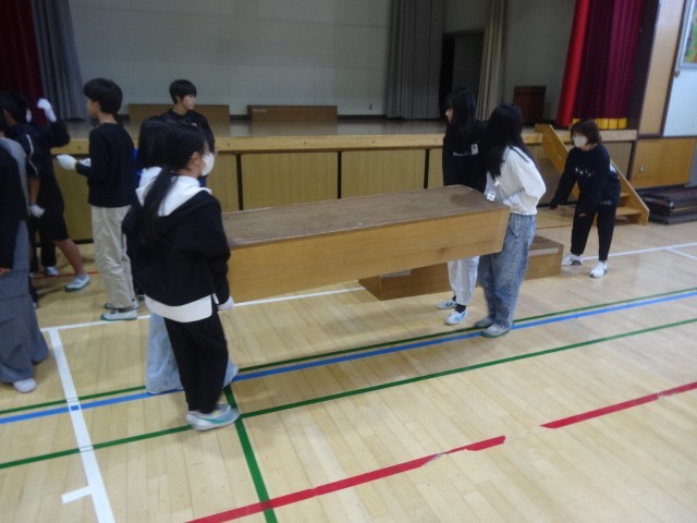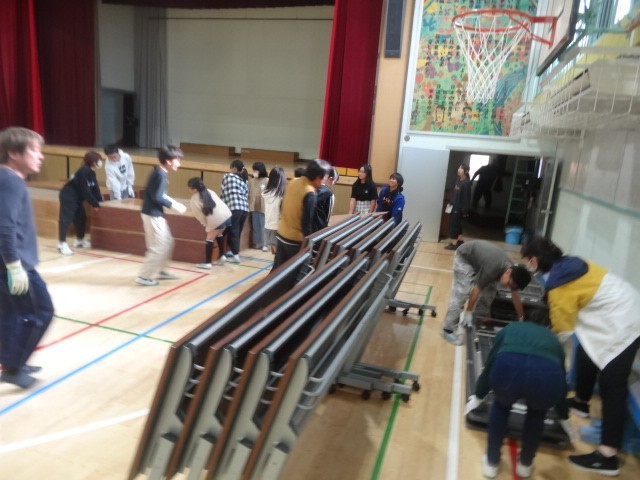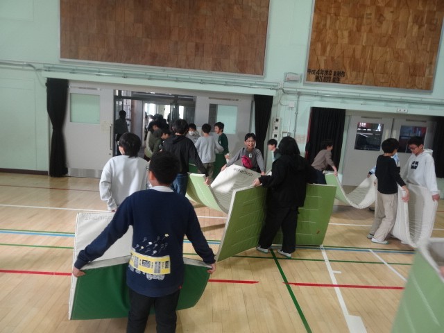 10月も終わりに近づき、11月は、展覧会の月となります。そこで、会場となる体育館の片づけが始まりました。6年生が早速体育用具を片付けてくれました。テキパキを進めて、あっという間に終わりました。頼れる6年生です。ありがとう!