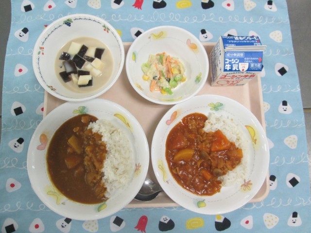 今日は「カレーライス」と「ハヤシライス」のセレクト給食でした。