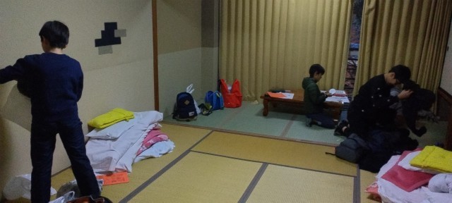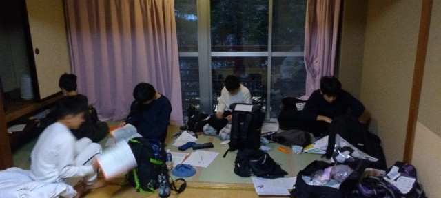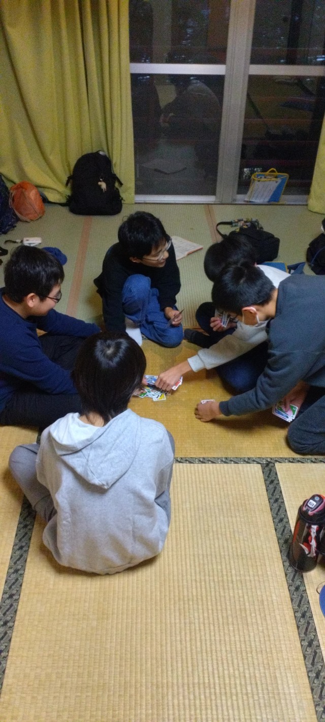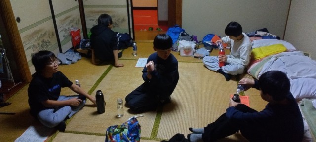朝食までの時間、今日の準備をしたり、もうゲームをしたりと活動が始まっています。