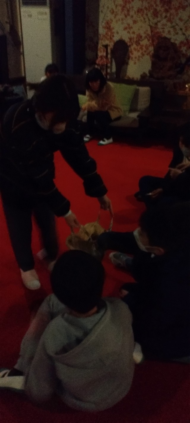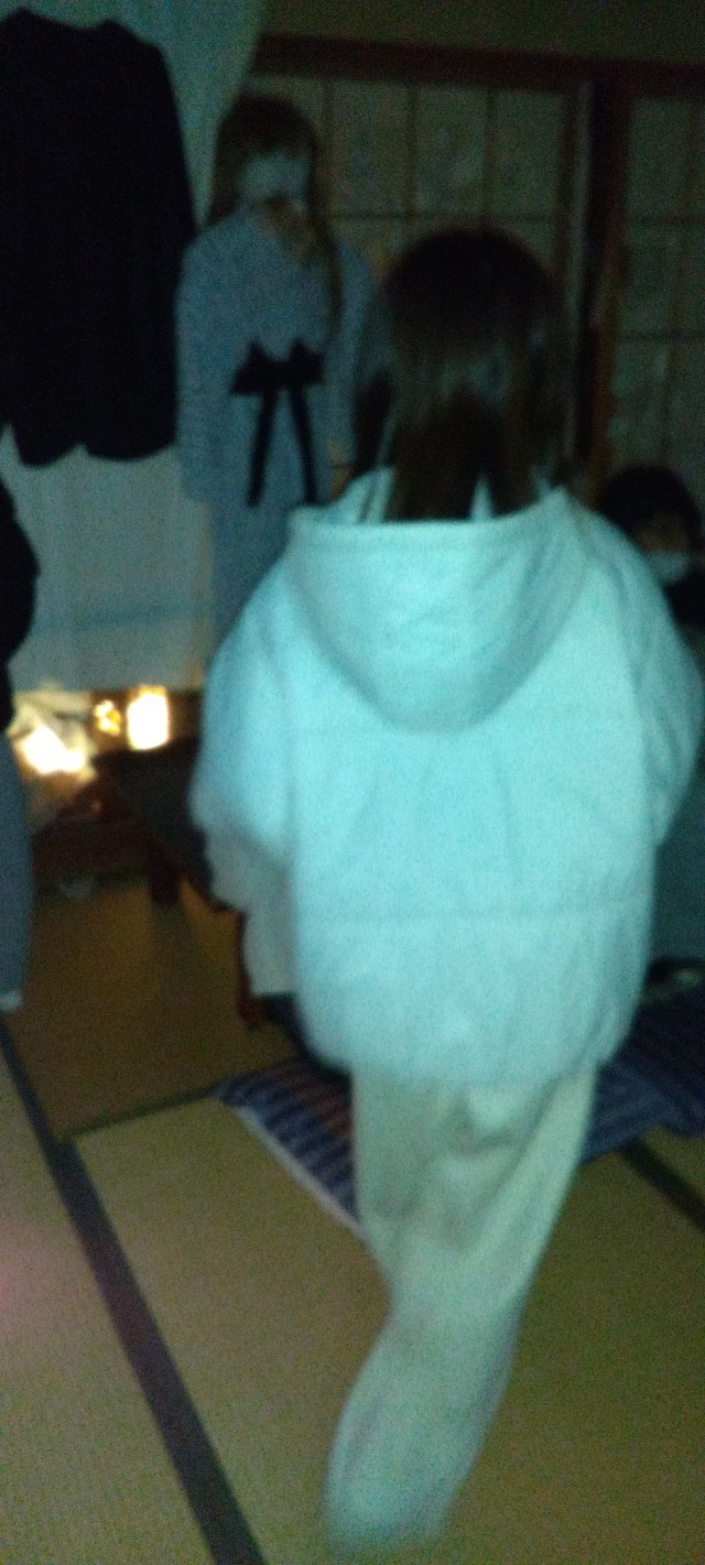 食後のレクです。今日は、梅屋敷名物きもだめしです。