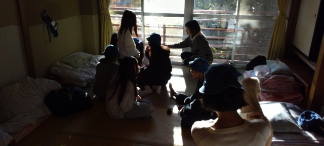 食事も終わりました。食後の少しの時間でしたが、昨日肝試しに参加しなかった子達が、どんな所だったのか見に行きました。部屋では、最後を惜しむかのようにおしゃべりなど楽しんでいました。