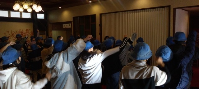 退館式が終わりました。宿を後にします。これから江戸村ですが