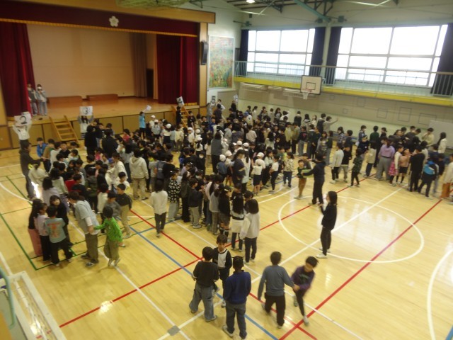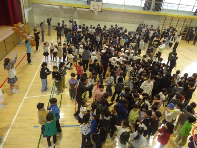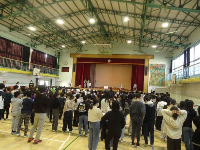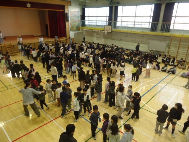 今回の集会は、学年ごとに1月から12月までの誕生日順に並ぶというものです。それぞれの誕生日を確かめながらコミュニケーションを深めていきます。