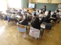 調理実習です。野菜のベーコン巻きです。アスパラ、ニンジン、えのきだけを巻きました。結構手際よく調理していました。