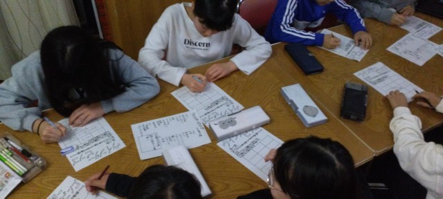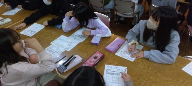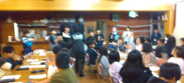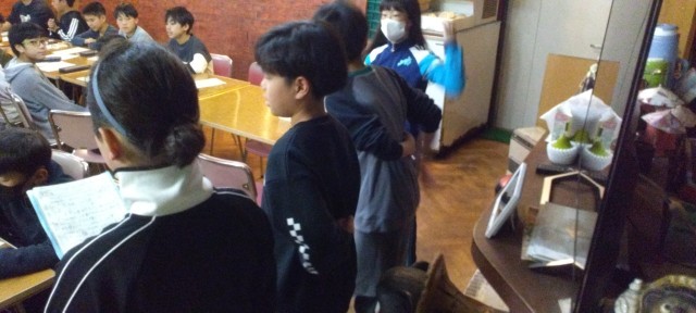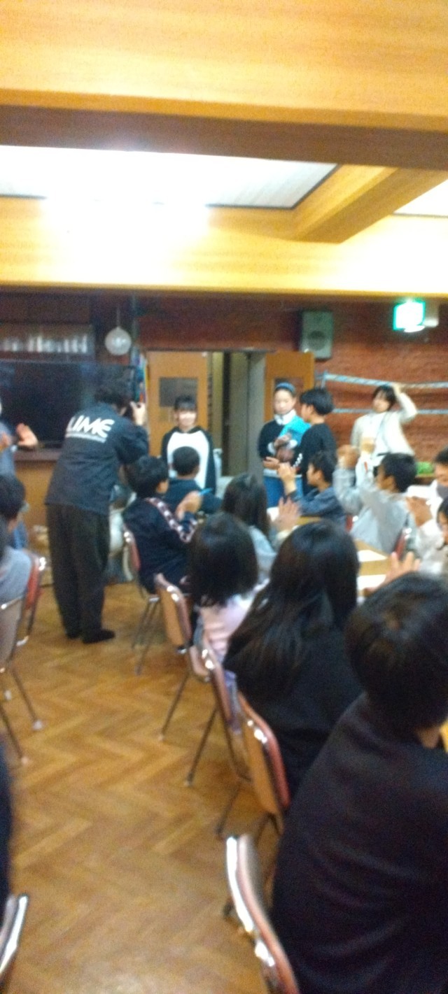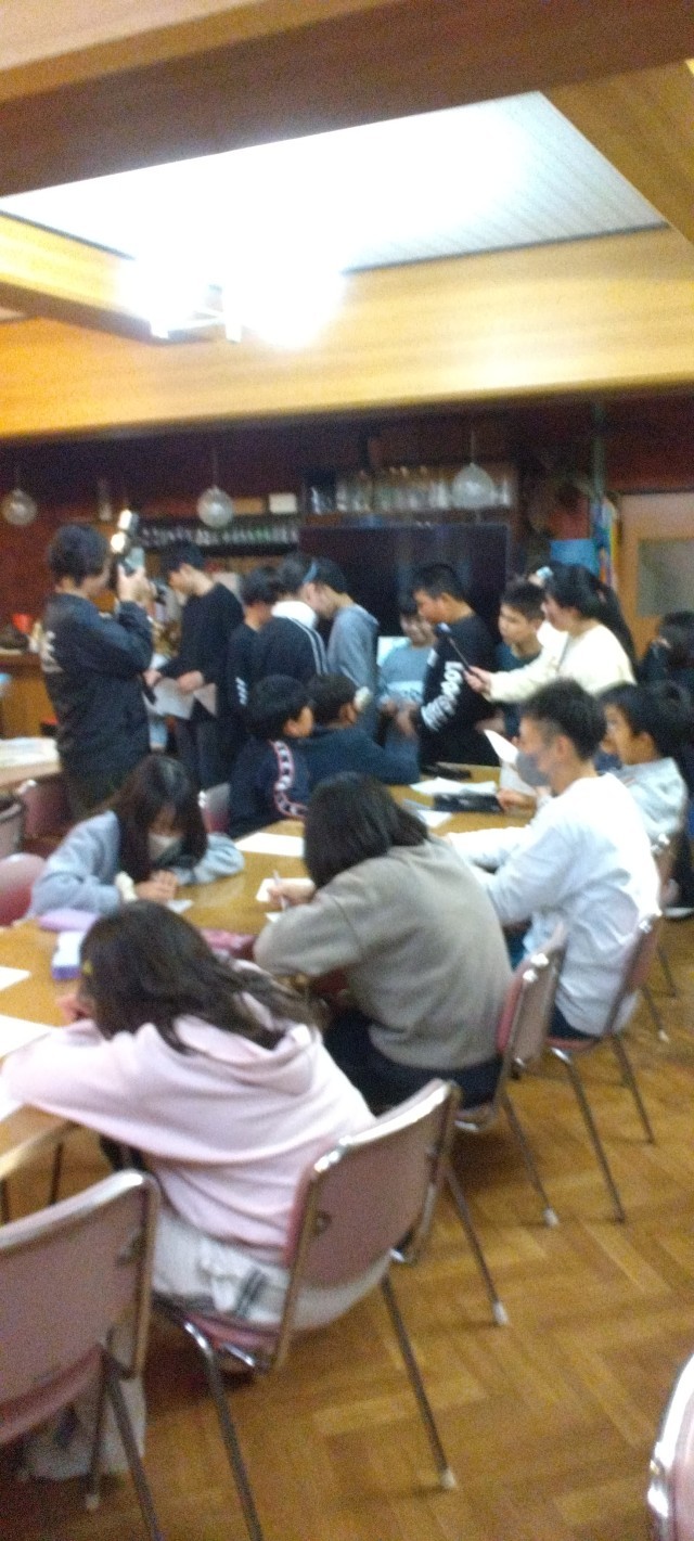 食事後の学年レクが始まりました。出し物はウインタービンゴ大会でした。