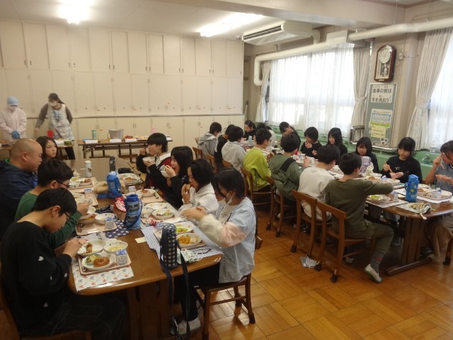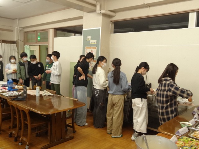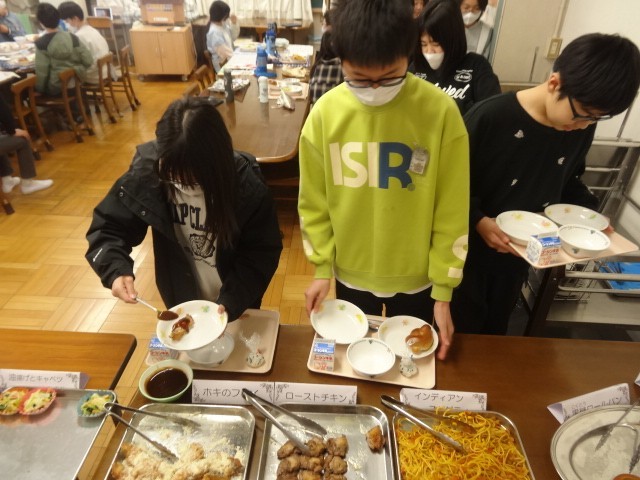 バイキング給食の2組の日となりました。1組と同じく初めにバイキング給食のルールの説明を聞きました。自分の食べられる量を考えながら慎重に選んでいました。
