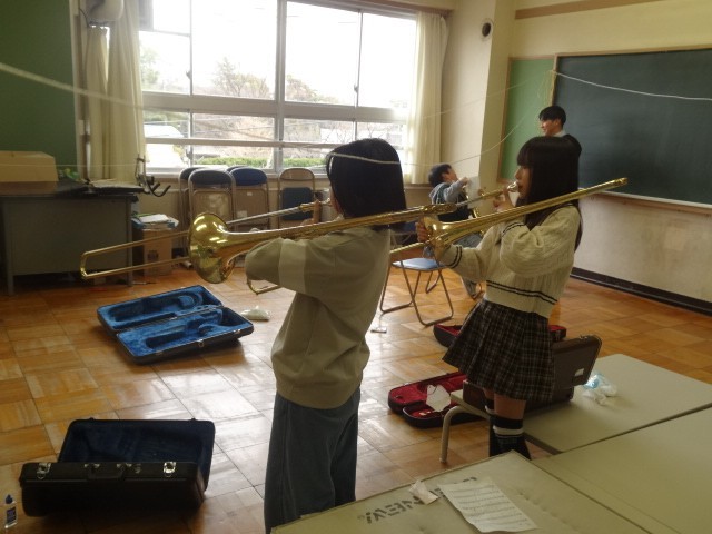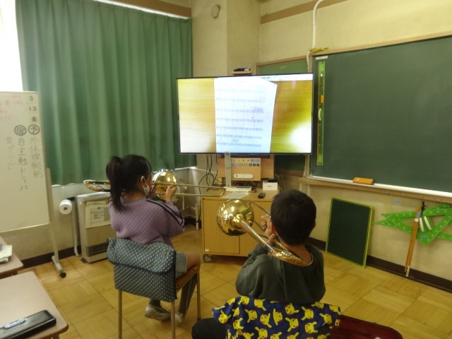5年生の練習も年度内の仕上げになってきました。各パートに分かれそれぞれの練習をしています。リズム、メロディーともにさらに良くなっています。他学年の先生も指導の応援に来てくれています。