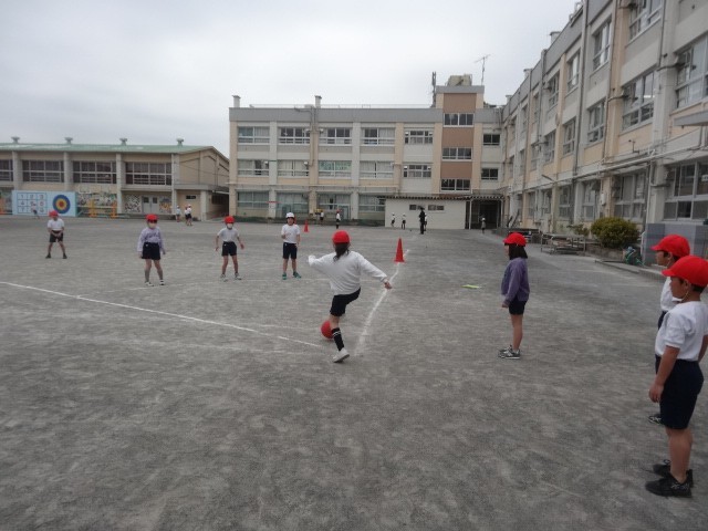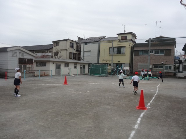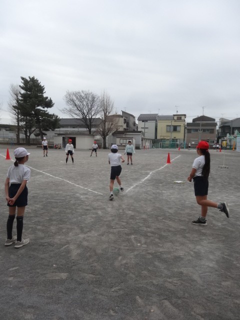 日差しのない寒々とした日ですが、キックベースを勝負にもこだわりながら楽しんでいました。