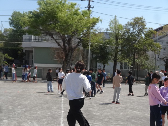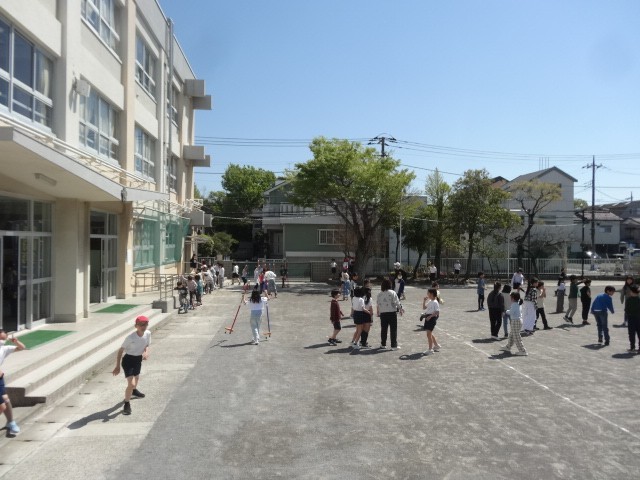 とても良い天気となり、校庭で皆元気に遊んでいます。体育館前のジャングルジムも春休み中に復活しました。早速遊んでくれて嬉しい限りです。やっぱり学校には子供がいないと寂しい限りです。