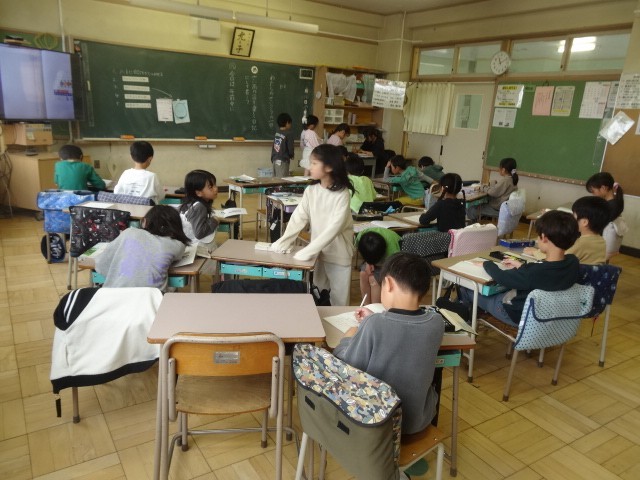 3年生の国語は、1組も2組も「わたしのさいこうの1日」という内容の作文を書いていました。
