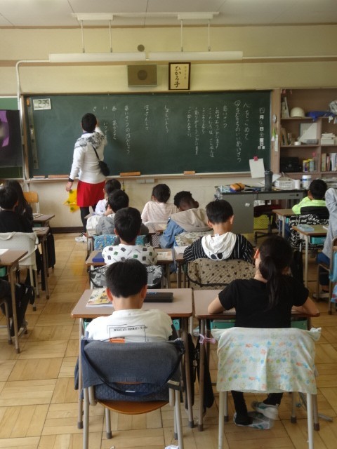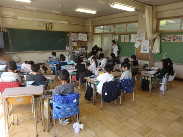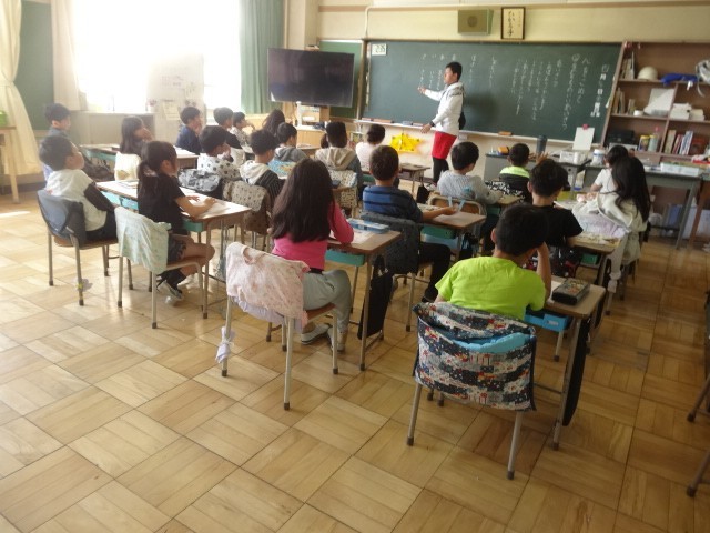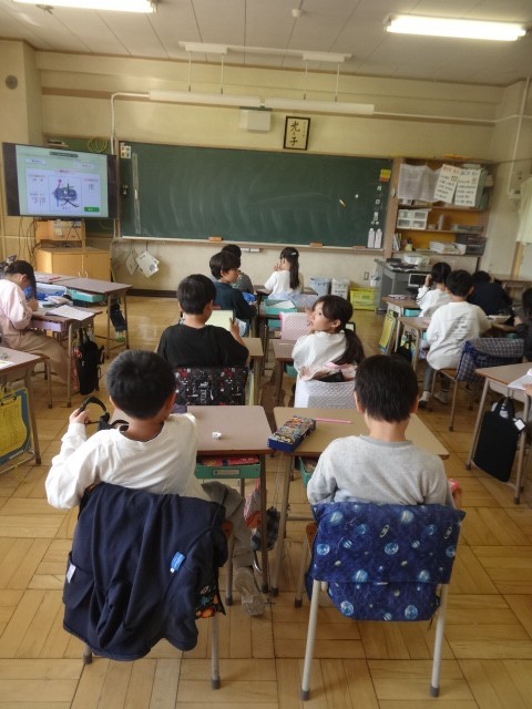 2組は、漢字の練習をしていました。1組は、道徳で、あいさつについて、どのようするのがいいかを考えていました。