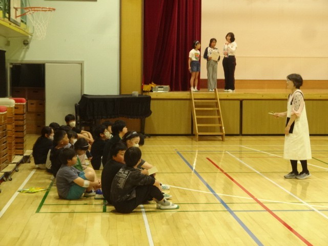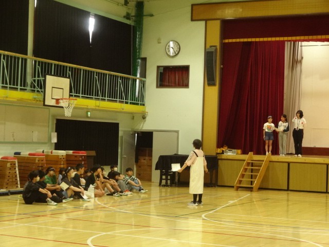 体育館では、今週金曜日に行う「委員会の紹介」集会の練習を各委員会の委員長が行っていました。