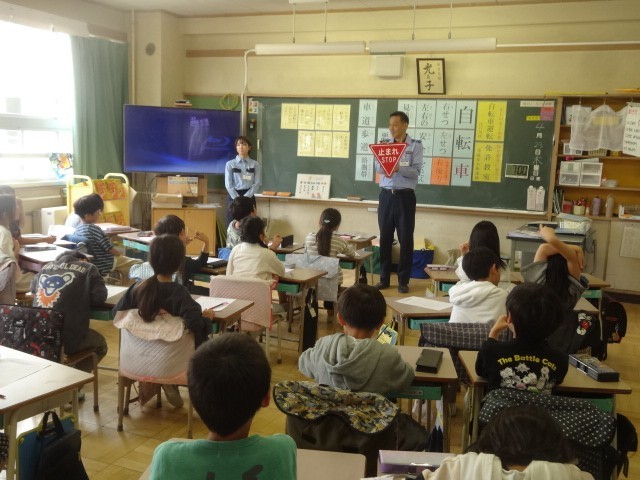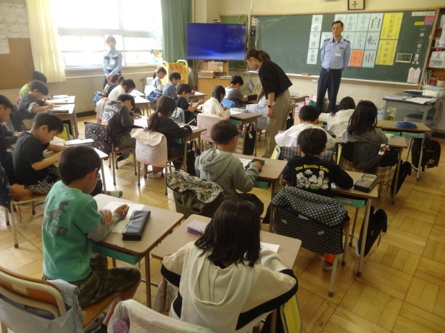 この時は、自転車点検の大切さを話してくださいました。合言葉は、「ぶたは、しゃべるライト」ブレーキ、タイヤ、ハンドル、車体、ベル、ライトです。気を付けたいものです。