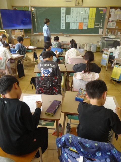 2組では、DVDを見て学んだことを元にした筆記試験を行っていました。試験の後は、〇付けをしながらさらに大切なことを学んでいました。