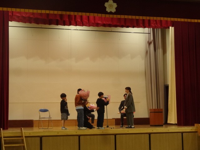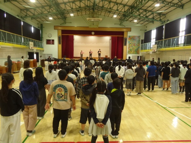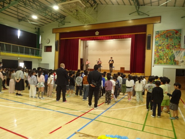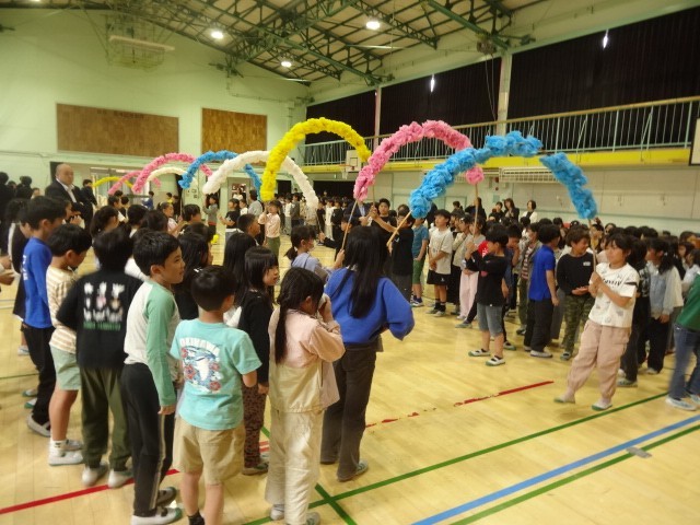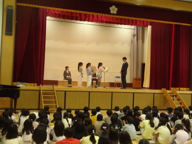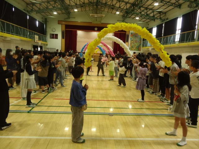 3月で篠二小を去られた先生方が約1か月ぶりに戻ってきてくださって離任式を行いました。作文を読む子、花束を渡す子、記念品を渡す子、フロアーで見守っている子、それぞれが昨年度までの思い出を胸に離任された先生方を見つめて心のこもった会となりました。