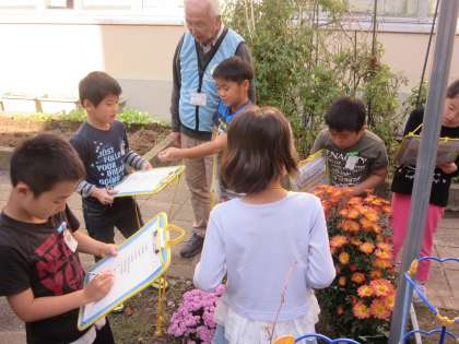 今日は2年生がエコセンターの方にいらしていただき出前授業を受けました。校内にある自然を探す生活科の勉強です。校庭の周りや中庭など、自分たちで周って探して、色々な事を教わっていました。エコセンターの皆様、本当にありがとうございました。